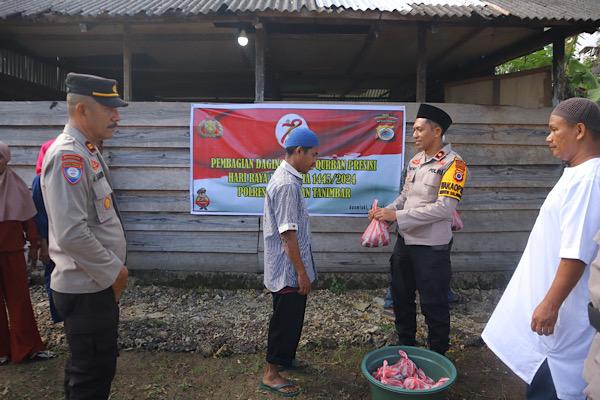 Pembagian daging Hewan Qurban Presisi yang dilakukan Kompol FRIHAMDENI, S.H., S.I.K., M.A., ini didampingi Kasat Binmas Iptu JOHANIS SAMPONU dan Kasi Humas Iptu OLOFIANUS BATLAYERY bersama Personel, berlokasi di Musolah Nur Rahman Desa Persiapan Ilingei Barat, Kecamatan Tanimbar Selatan, Kabupaten Kepulauan Tanimbar, Selasa (18/06/24)
