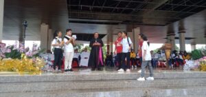 Nampak hadir Uskup Diosis Amboina, MGR. SENO NGUTRA., Penjabat Bupati Kepulauan Tanimbar yang diwakili Plh. Sekretaris Daerah AGUSTINUS SONGOPNUAN, ST., Kapolres Kepulauan Tanimbar yang diwakili Kabag SDM, AKP SIMSON KORMASELA, SH., Wakil Uskup, para Perwakilan dari Forkopimda, para Pimpinan OPD, Pimpinan BUMD dan BUMN, Perwakilan Pelajar tingkat TK sampai dengan SMA/SMK se-Kota Saumlaki, Perwakilan Serikat Kepausan Anak-anak dan Remaja Misioner (SEKAMI) dari Paroki se-Kecamatan Tanimbar Selatan hingga Perwakilan Generasi Berencana (GenRe) Indonesia Wilayah Kabupaten Kepulauan Tanimbar.