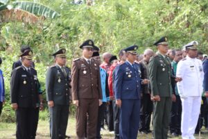 Tribratanews.polrestanimbar.com – Polda Maluku, Polres Kepulauan Tanimbar, Dalam rangka menyambut HUT TNI ke-78 dan HUT Kabupaten Kepulauan Tanimbar ke-24, Kapolres Kepulauan Tanimbar yang diwakili oleh Kabag Ren AKBP O. P. Lekawael, menghadiri upacara Ziarah Nasional dan tabur bunga di Taman Makam Pahlawan Desa Lauran, Kecamatan Tanimbar Selatan, Selasa (03/10).