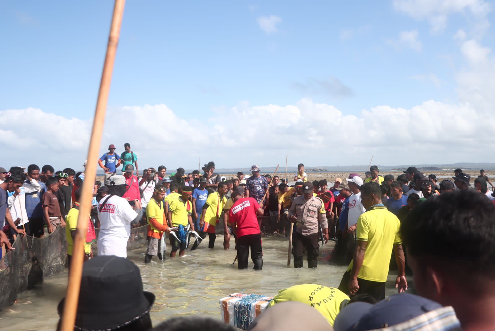 Perlu diketahui bahwa, proses penangkapan Ikan ini yaitu dengan menggunakan janur kelapa yang diikat sepanjang tali dan dilepas sepanjang laut kemudian ditarik menuju ke Darat. Proses ini berlangsung hingga air surut dan kedua ujung tali itu akan disatukan membentuk lingkaran untuk mengepung ikan.