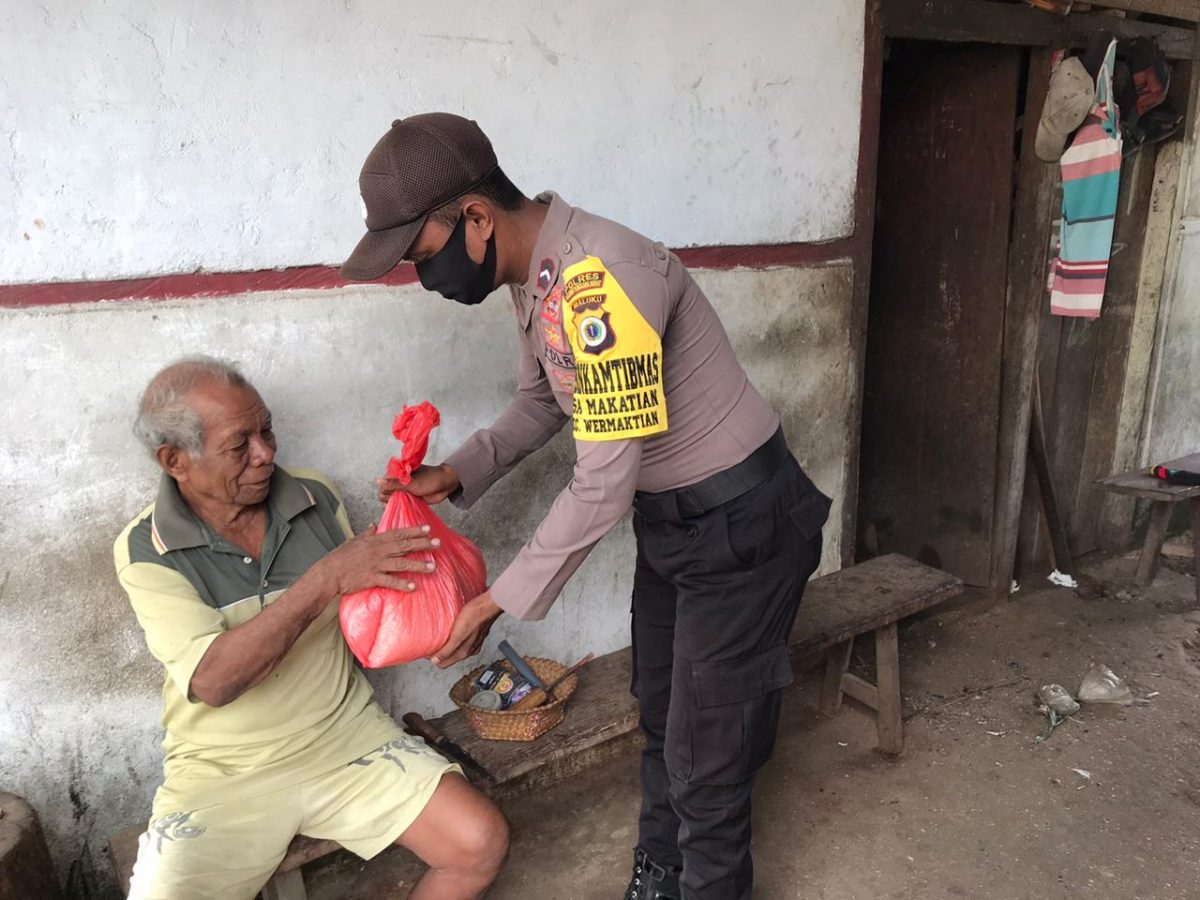 Kegiatan Bakti sosial berupa pemberian sembako dari Polsek Wermaktian yang dilakukan oleh Bhabinkamtibmas desa Makatian