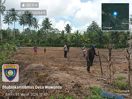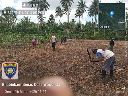 Hal tersebut ditunjukkan oleh Bhabinkamtibmas Desa Wowonda, Bripka ALAN TALAHATU yang melaksanakan giat sambang dialogis kepada Warga Petani di Desa Wowonda, Kecamatan Tanimbar Selatan, Kabupaten Kepulauan Tanimbar, Senin (16/03/26).