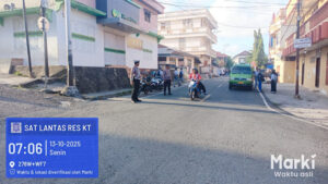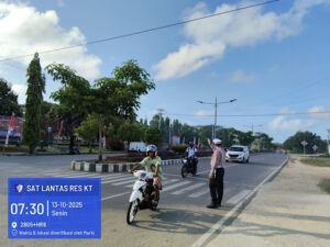 Tribratanews.polrestanimbar.com – Polda Maluku, Kepolisian Resor Kepulauan Tanimbar, Sebagai wujud pelayanan prima Kepolisian, Satuan Lalu Lintas Polres Kepulauan Tanimbar secara rutin melaksanakan kegiatan pengaturan lalu lintas di pagi hari pada, Senin (13/10/25).