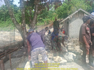 Dengan mengenakan pakaian dinas, Aipda H. L. MASBAITUBUN terlihat membaur dengan Warga, bahu-membahu memindahkan dan mengumpulkan batu di lokasi pembangunan Gereja. Aksi ini menunjukkan bahwa tugas Kepolisian tidak hanya terbatas pada penegakan hukum saja, tetapi juga hadir dalam setiap kegiatan sosial Kemasyarakatan.
