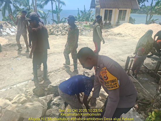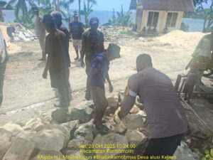Disamping membantu proses pemindahan material berupa batu, Bhabinkamtibmas pun berkesempatan hadir untuk memberikan Imbauan dan pesan Kamtibmas terkait kewaspadaan terhadap potensi kejahatan maupun bencana alam yang dapat terjadi, terutama yang beraktivitas di kebun maupun di laut.