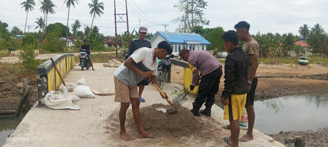 Aksi ini dilakukan Bhabinkamtibmas pada, Minggu (28/09/25) pagi di Desa Kilon, Kecamatan Wuarlabobar, Kabupaten Kepulauan Tanimbar. Bersama Warga, Mereka tampak kompak saling bahu membahu mencampur semen hingga menimbun dan meratakan jalan yang rusak dengan material seadanya.